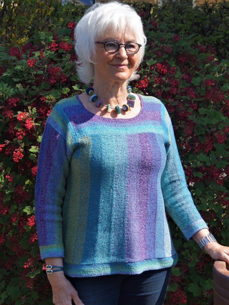 Wir verkaufen Stricksets in verschiedenen Grössen wegen der Garnmenge.