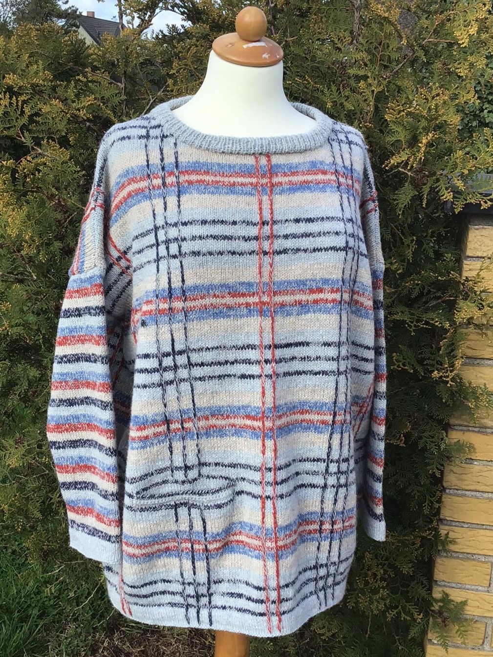 - Dit brystmål: 85-100 cm. Strik en S/M og hvis du ligger tæt på de 100 cm, bør du overveje en str. M/XL hvis du vil have ekstra bevægelsesfrihed.