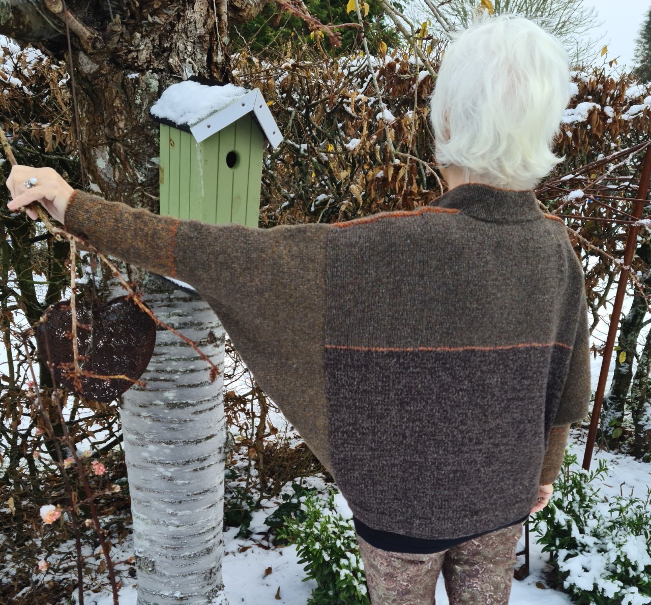 - Hoftebredden på færdig trøje er ca: 101 – (111) – 122 – (132) – 143 cm