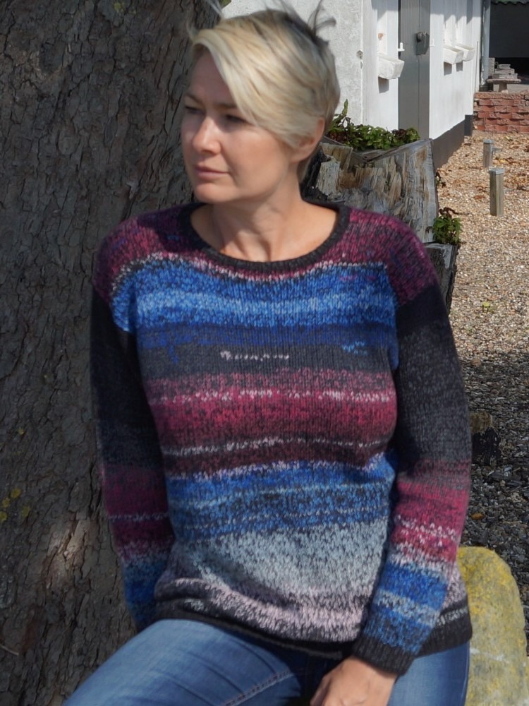 Materiale: Coast garn 55 % lammeuld/45 % bomuld- strikket med 3 tråde garn på p 6
