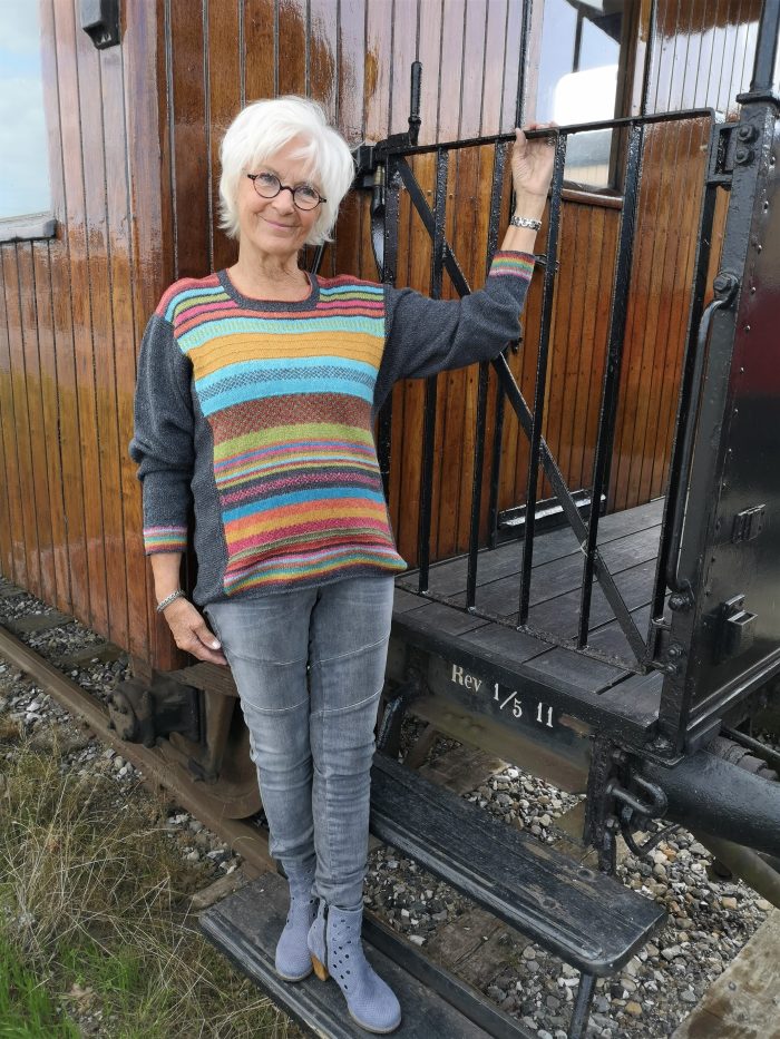 10 forskellige farver brugt i trøjen.